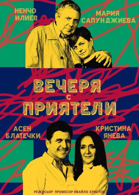 На 15 юни от 19:00 ч. в Театъра Дом-паметник ще гостуват популярните български актьори АСЕН БЛАТЕЧКИ, НЕНЧО ИЛЧЕВ, МАРИЯ САПУНДЖИЕВА и КРИСТИНА ЯНЕВА със спектакъла „ВЕЧЕРЯ С ПРИЯТЕЛИ“.