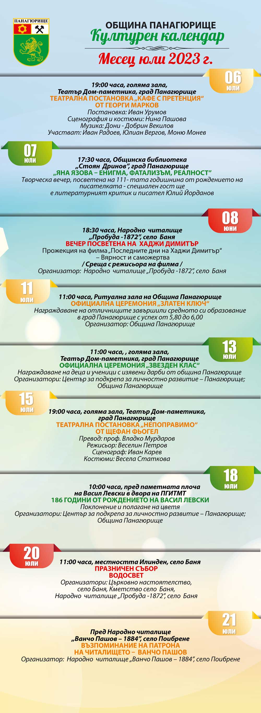 Публикувано на 06.07.2023 в 1000 × 2727 в Културните събития в община Панагюрище през юли