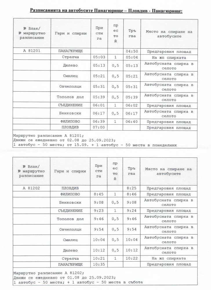 Публикувано на 01.08.2023 в 728 × 1000 в Влакът Пловдив – Панагюрище спира от 1 август до 25 септември. Автобуси ще обслужват маршрута му