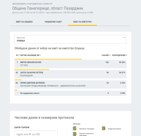 - с. Елшица – Митко Кочев (ПП ГЕРБ) -186 гласа – 60.00% ;