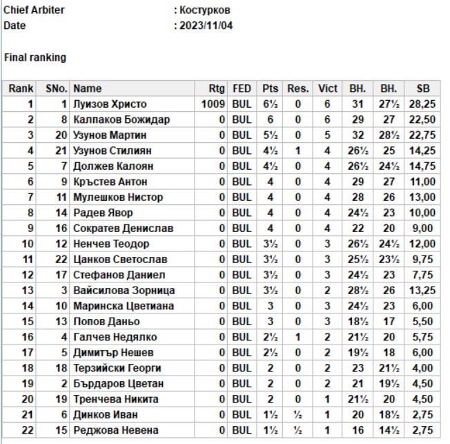 шах турнир будители класиране