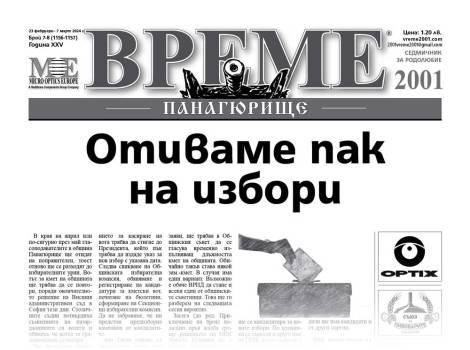 На 23 февруари излезе от печат новият брой на панагюрския вестник „Време“. В него ще откриете актуалните новини от общината ни случили се първите дни на новата година. Сред интересните теми в броя тях са: