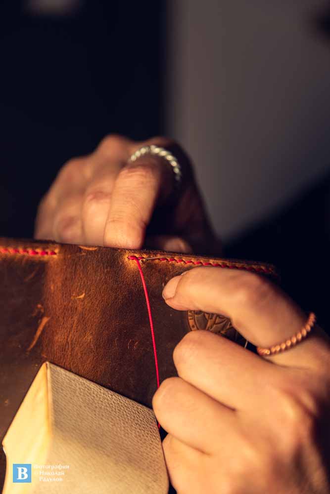 Тънкостите в занаята не мога да се опишат с думи, те могат да се усвоят единствено с практика. В ателието, нашите клиенти могат да видят процеса на изработка на артикулите ни в реално време. Ползваме само ръчни инструменти и шием всичко на ръка като тук мога да вметна, че има огромна разлика между ръчния и машинния шев. При ръчния шев се шие с две игли, съответно два конеца едновременно държат конструкцията на изделието, което я прави значително по-здрава от тази, която е ушита на машина.