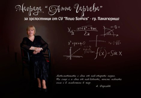 Зрелостникът Петър Петров Дерменджиев е тазгодишният носител на наградата за отличен математик на СУ „Нешо Бончев“ на името на Анна Гарчева. Тя бе връчена от съпруга на Анна, която бе водещ преподавател по математика в Панагюрище. Инж. Лука Гарчев отправи поздрав към зрелостниците на училището в церемонията по връчване на техните дипломи за средно образование.