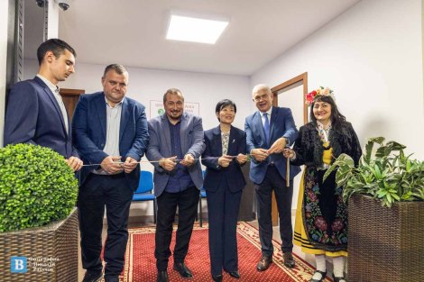 Символично лентата за откриването Центъра прерязаха г-н Гагов, проф. Джу, инж. Николай Пелтеков, изпълнителен директор на „Асарел-Медет“ и д-р Дренски.