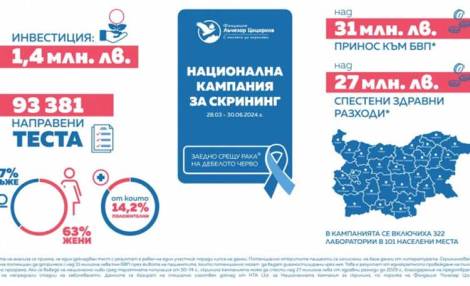 За реализация на мащабния скрининг фондацията е платила 1,4 млн. лева, но ефектът за БВП, който изчисляват експертите, е на стойност  над 31 млн. лв. от друга страна спестяването на здравни разходи се изчислява на над 27 млн. лв. до 2029 г.