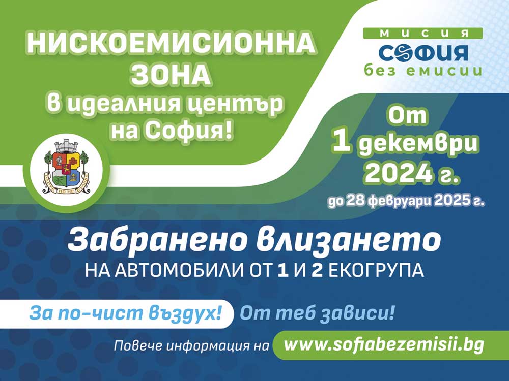 Публикувано на 02.12.2024 в 1000 × 750 в Столична община припомня – от 1 декември влиза в сила нискоемисионната зона за автомобили