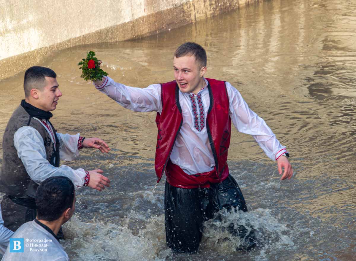 Три пъти свещениците хвърляха кръста в реката заедно с благослов за здраве и благоденствие за всички жители на общината. Първият път свещения кръст улови 18-годишният Лука Ралчев. Късметът споходи втория път Николай Богоев, а накрая – Мартин Нонов. След успешния ритуал младежите се хванаха на хоро, запявайки песента за Райна Княгиня. Множеството аплодира възторжено запяването на българския химн.