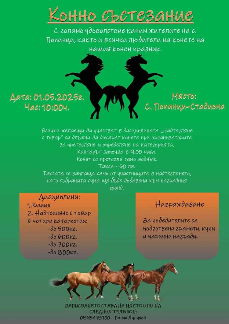 Публикувано на 16.04.2025 в 750 × 1060 в Конно състезание организират на 1 май в Попинци