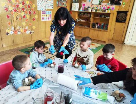 Децата се запознаха с историята, традициите и символиката на празника, а след това запретнаха ръкави и се захванаха за работа. Те бяха любопитни да научат, че първото яйце трябва винаги да бъде червено и с него се прави кръстен знак върху челата им. Много усмивки предизвикаха малките изцапани ръчички на малчуганите. Готовите разноцветни яйца грейнаха като детски слънца.