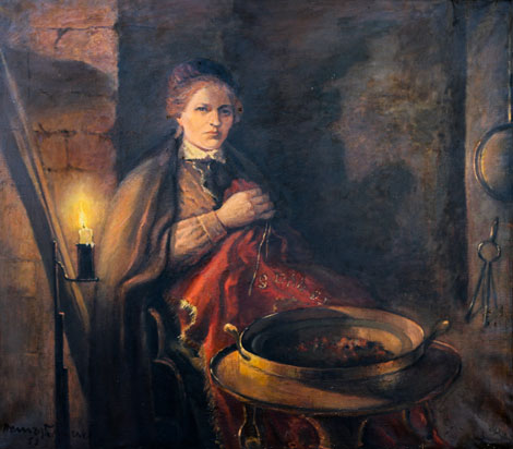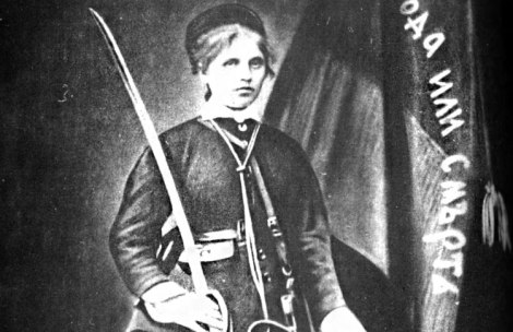 От историята знаем, че това е Бенковски, който й нарежда да ушие знамето на въстаниците. После трябва да го понесе до Бенковски сред въстаналия народ в Панагюрище.