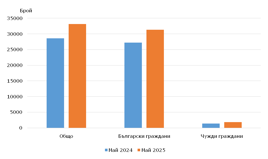 Предпочитаните обекти са тези с три звезди. Приходите от нощувки през май 2025 г. се увеличават с 30% спрямо същия месец на предходната година и достигат 7 355 940 лв.