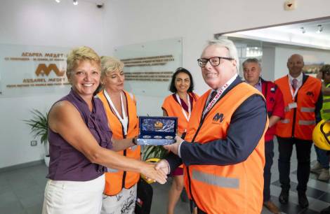 Гостите разгледаха двете фирмени експозиции, посветени на историята и развитието на „Асарел-Медет“, и посетиха наблюдателната площадка на рудник „Асарел“, където инж. Иван Чолаков ги запозна с процесите по добив, обогатяване и флотация на медната руда.