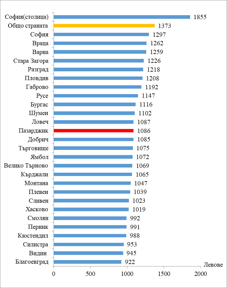 Средна брутна месечна работна заплата по области през трето тримесечие на 2020 година